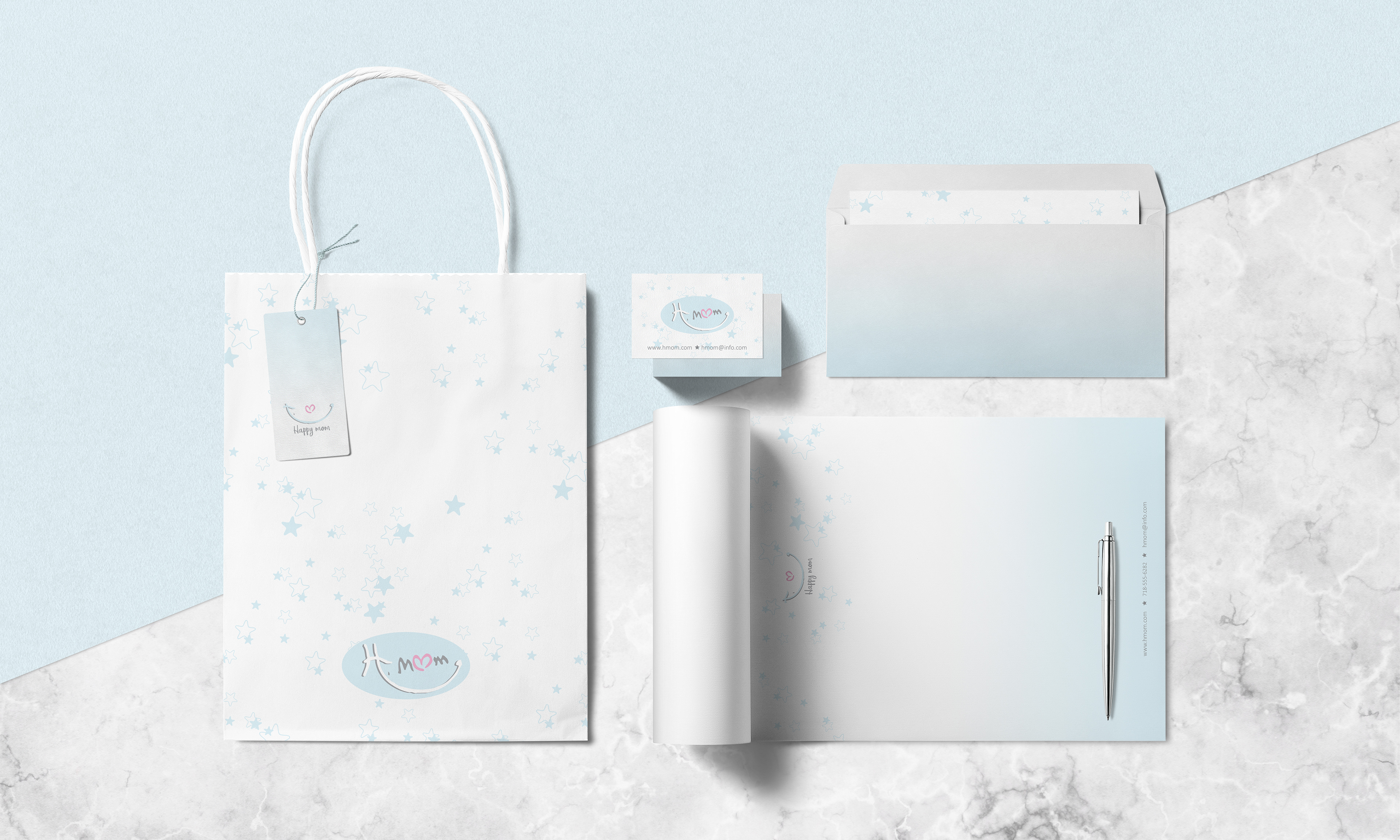 Brand Identity for H.mom - private label that sells Pack N Play mattresses for babies. With a product made especially for the baby comfort and safety, we wanted to keep our happy moms with a smile and combine it in their logo.