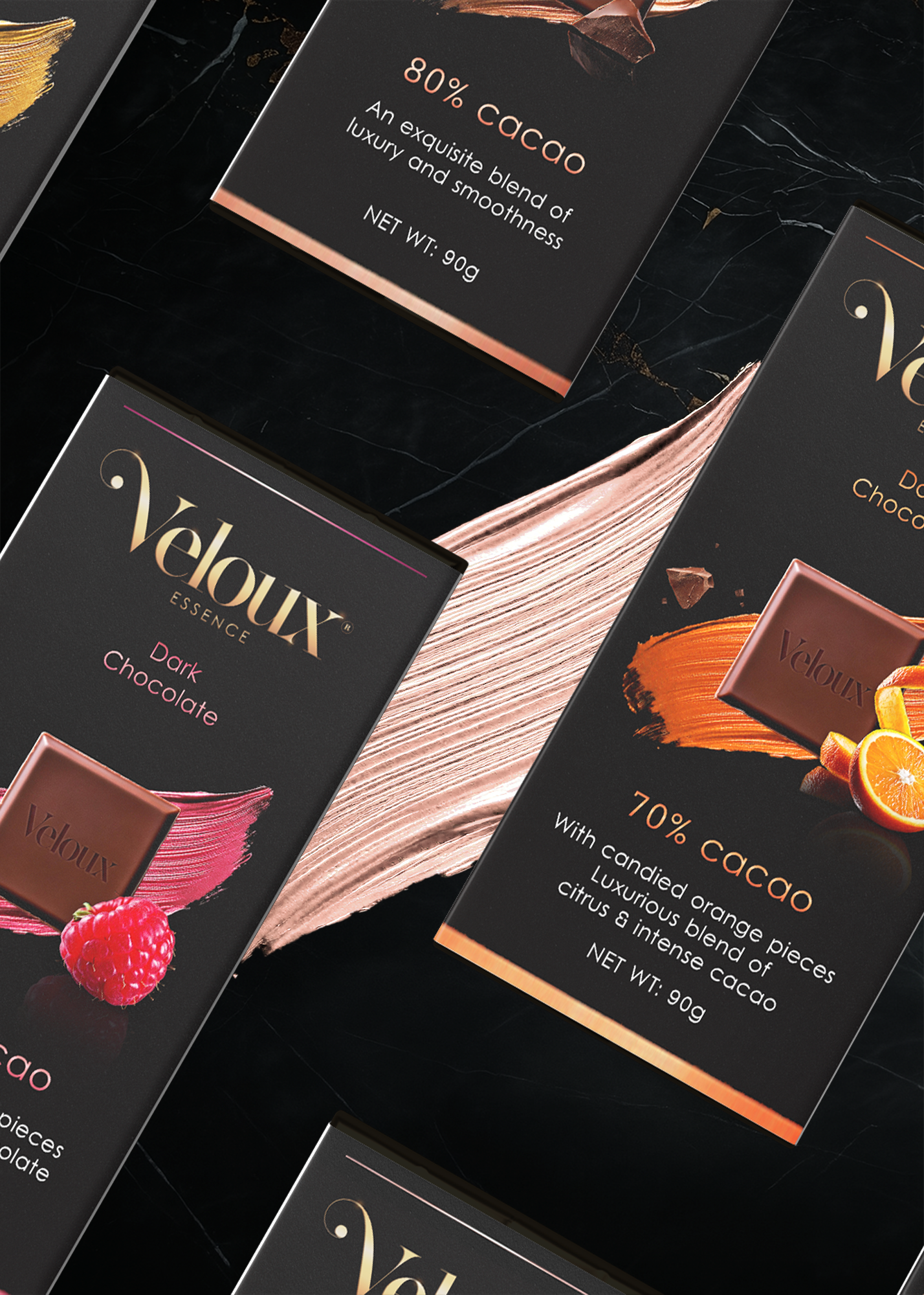 Luxury Chocolate Brand Identity A self-initiated project exploring sensory-driven brand design through premium typography, refined material textures, and immersive storytelling. The work includes logo development, a seven-product packaging system, and high-end photorealistic product visualization - created using Adobe Illustrator, Photoshop, and AI-assisted rendering. A case study in how strategic creative direction and advanced digital tools can shape a cohesive luxury brand experience.